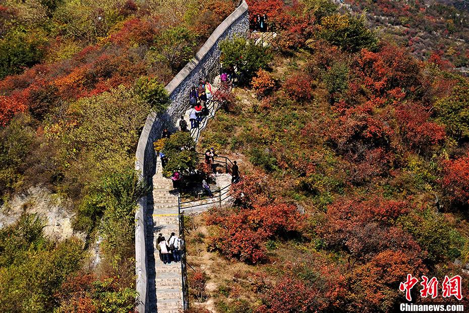 近日,霜降节气的到来,香山红叶也进入了层林尽染、漫山红遍、如火如荼的最佳观赏季节。10月24日,据香山红叶物候观测小组的最新统计数据显示,目前全园红叶的平均变色率达到了60%。香山公园为广大游客推荐:静翠湖、香炉峰、山杏林、看云起亭、森玉笏亭、玉华岫、青未了、隔云钟等8处观看红叶的最佳景点,乘坐索道凌空观赏红叶将成为游客最为热捧的一条游览路线。中新网记者 金硕 摄