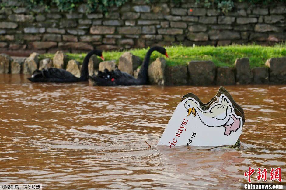 据报道,此轮暴风雨风速达到飓风级别。气象机构预测称,这是近年来英国遭遇的最严重的一次暴风雨之一。目前,已经有一名男孩在冲浪时被水冲向大海,生存几率极小。图为暴风雨引发洪水。