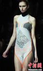 10月28日,正在北京举行的中国国际时装周(2014春夏系列)举行“乔丹杯中国运动装备设计大赛决赛以“蜕变”作为此次大赛的主题。运动设计越来越被学生与设计师重视与关注。入围的作品有来自各大院校的作品还有自由设计师的参与。图为模特展示第八届中国运动装备设计大赛作品。中新社发 钱兴强 摄