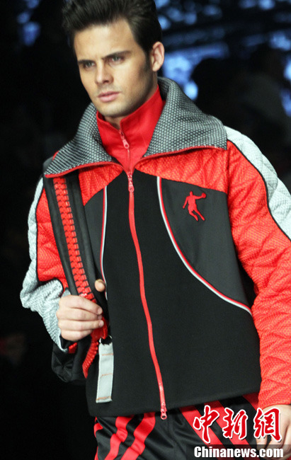 10月28日,正在北京举行的中国国际时装周(2014春夏系列)举行“乔丹杯中国运动装备设计大赛决赛以“蜕变”作为此次大赛的主题。运动设计越来越被学生与设计师重视与关注。入围的作品有来自各大院校的作品还有自由设计师的参与。图为模特展示第八届中国运动装备设计大赛作品。中新社发 钱兴强 摄