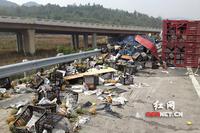 10月27日10时许,一辆牌号为晋EL56***的大货车由广东开往北京途中,从宜凤高速转至岳临高速,通过匝道时不慎侧翻,车上运载的30吨新鲜菠萝全部倾倒。附近围观的少数村民开始哄抢菠萝。