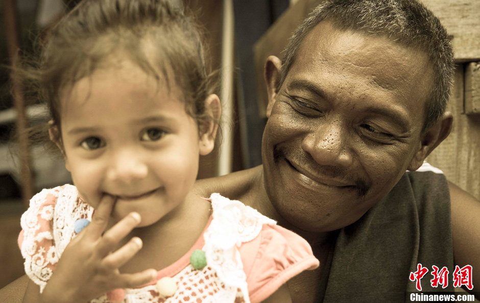 图为岛上的一对父女,他们是岛上原住民,以开旅游客栈为生。中新社发 张浩 摄