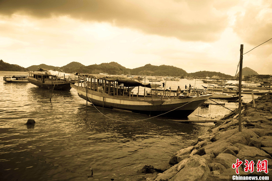 图为码头停靠的船舶,这里的打渔业是除旅游业外的另一支柱产业。中新社发 张浩 摄