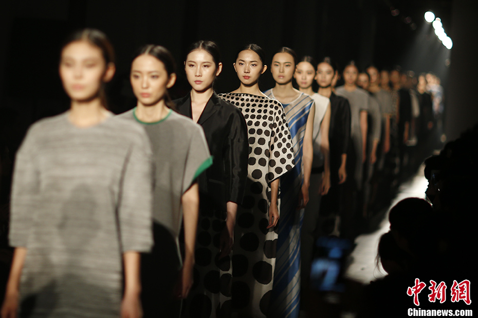 10月31日,模特在北京举行的中国国际时装周(2014春夏系列)上展示设计师邹游设计的时装。中新社发 盛佳鹏 摄
