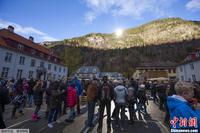 当地时间10月30日,挪威中部小镇留坎的市民庆祝人造“太阳”正式落成。挪威靠近北极圈,每年的9月到来年3月,小镇留坎都照射不到阳光,这种情况维持了100多年。今年,当地人在山顶竖起三面巨大反光镜,这样留坎镇的三千多居民将首次在镇中心广场感受冬日里温暖的阳光。