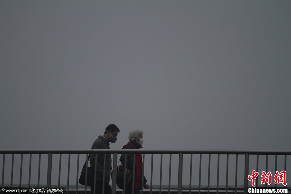2013年11月01日,北京遭遇雾霾袭城,空气质量极差。10月31日,北京市气象台再次发布霾黄色预警信号:预计今天夜间到明天白天,北京地区空气污染气象条件为五级,很不利于污染物的扩散和清除,提醒市民注意防范。图片来源:CFP视觉中国