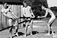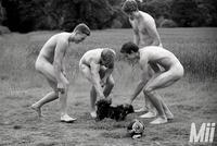 英国沃里克郡大学男子赛艇队的14名成员们连续第五年拍摄裸体慈善日历,这些学生年龄在18岁到21岁间,日历内容不同于往年集中于赛艇主题,而是体现这些青年在河边嬉戏的青春景象。图片来源:环球网