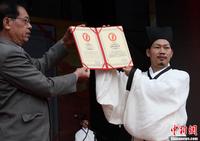 浙江西塘370人着汉服行“乡饮酒礼” 创吉尼斯纪录