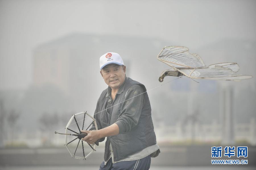 11月2日,一名老人在北京永定门放风筝时练习低空盘旋。新华社记者 宋为伟 摄 图片来源:新华网