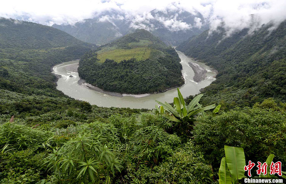 西藏自治区林芝地区位于西藏东部,平均海拔为2900米,林芝集中了西藏70%的森林资源,既是藏医药文化发祥地,也是西藏原始宗教苯教发源地之一,拥有绮丽的珞瑜文化和工布文化,被誉为“远古文化的活化石”。在2005年由《中国国家地理》杂志社评选出的110个“中国最美的景区”中,林芝占5个,其中包括雅鲁藏布大峡谷、南迦巴瓦峰、藏布巴东瀑布群等。图为林芝地区墨脱县雅鲁藏布江蛇形大拐弯。李林 摄
