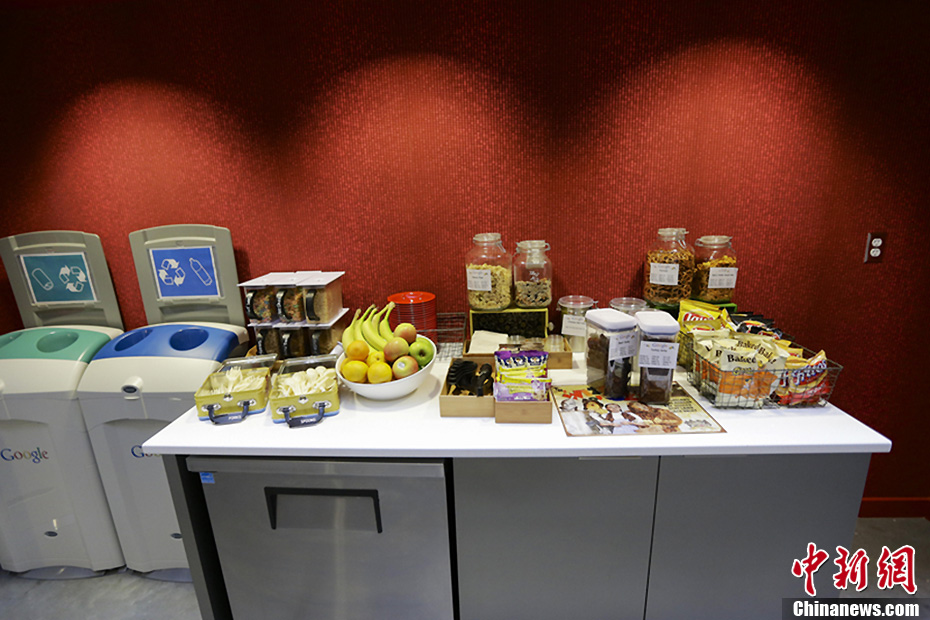 当地时间2013年10月3日,美国爱荷华州康瑟尔布拉夫斯,谷歌新数据中心的小吃店。据悉,谷歌公司在开放日向外界展示新数据中心的舒适办公环境。图片来源:东方IC 版权作品 请勿转载
