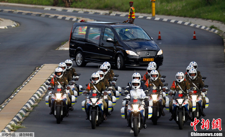 12月14日,南非比勒陀利亚郊外的沃特克鲁夫空军基地(Waterkloof Air Force Base),曼德拉灵柩送别仪式举行。南非前总统曼德拉的国葬仪式将于12月15日在他的故乡库努小村举行。