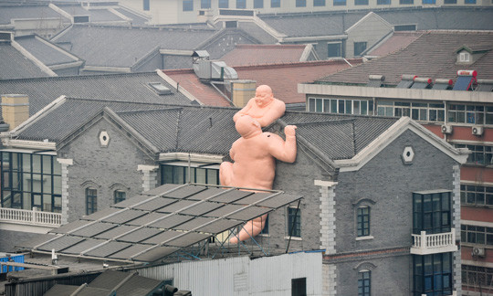 1月15日,新加坡滨海湾金沙会展中心,第四届国际艺术博览会预展会上,一名参观者观看一名澳大利亚雕塑家的作品“Divide”。