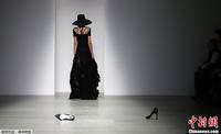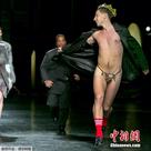 伦敦时装周模特深V走秀不慎走光忙遮掩