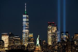 “9·11”20周年 纽约亮起光柱