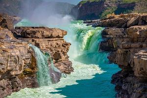 壶口瀑布现青山绿水