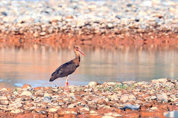 “鸟中大熊猫”黑鹳现身黄河青海民和段