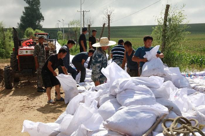 黑龙江省拉林河沿线村庄筑堤防汛