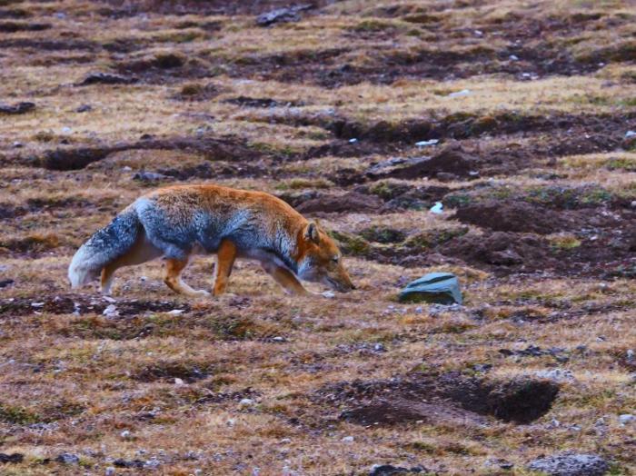 “丑萌”藏狐独自觅食