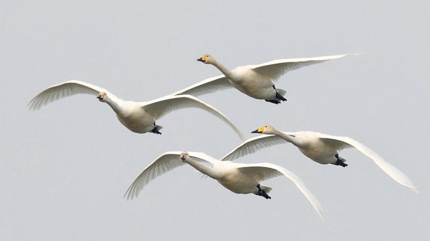 大批越冬大天鹅开启北迁之旅
