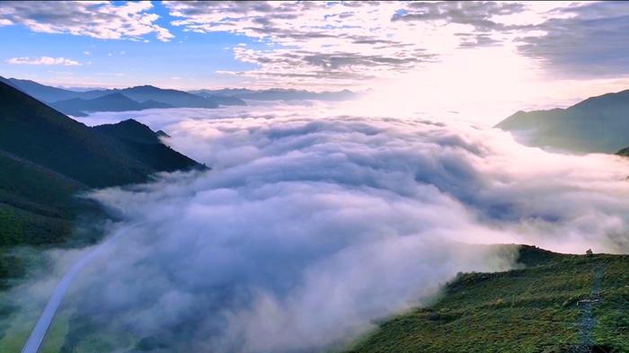 航拍青海互助北山:云雾缭绕 宛若仙境