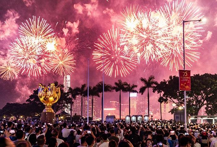 香港举行“盛世烟花耀中华”国庆烟花汇演