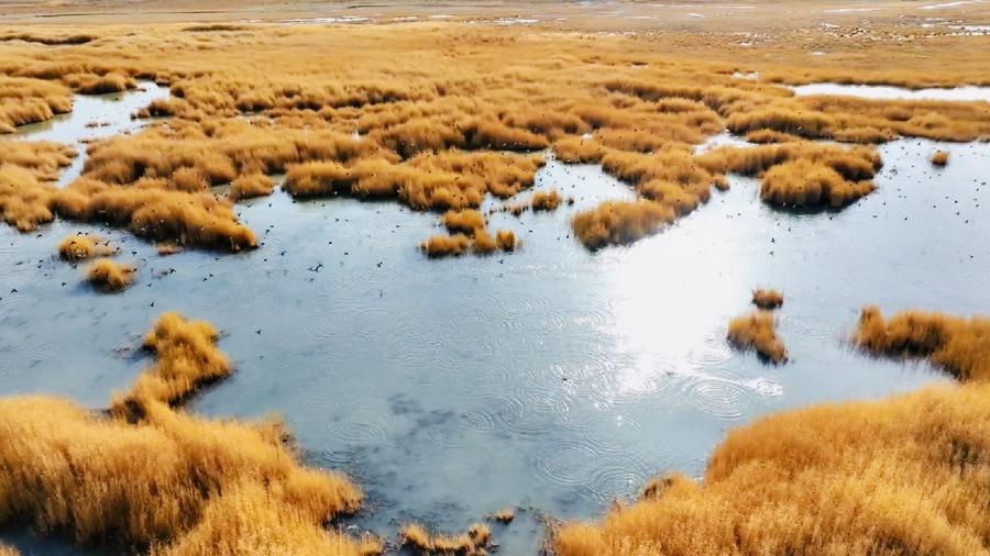 条子泥湿地披红毯 野生麋鹿奔跑嬉戏