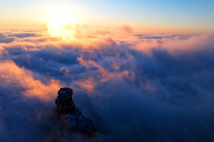 初雪落日中的梵净山 宛如人间仙境