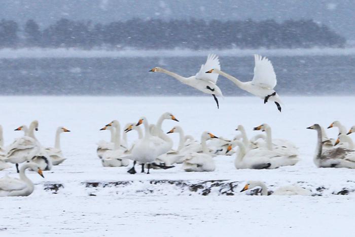 山东荣成:雪中天鹅湖 宛如童话世界