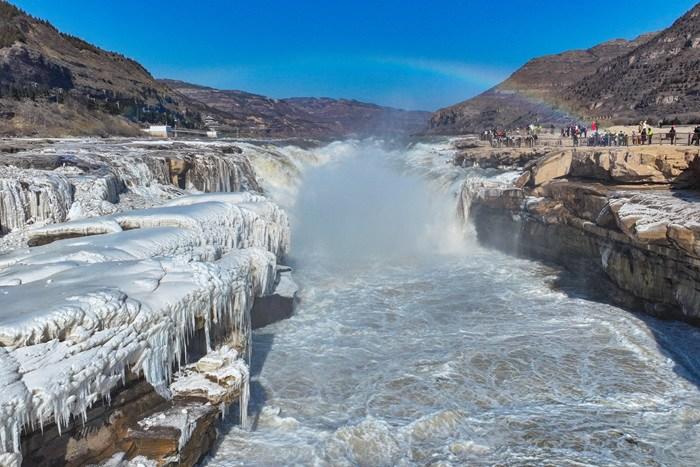 陕西黄河壶口瀑布冰河解冻 景色美如画