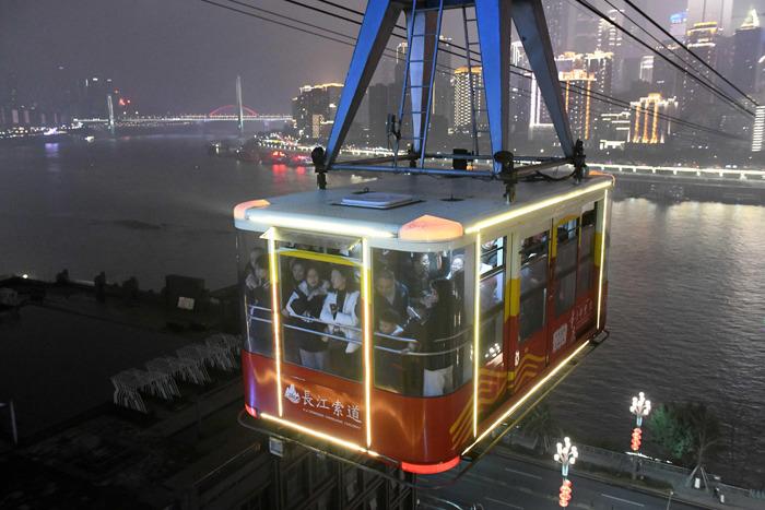 2月3日晚,为庆祝新春佳节,长沙铜官窑精彩的打铁花、火龙、火壶轮番上演,吸引众多游客围观,感受这些古老民俗技艺带来的冲击与震撼。图为艺人们挥舞着火龙。
