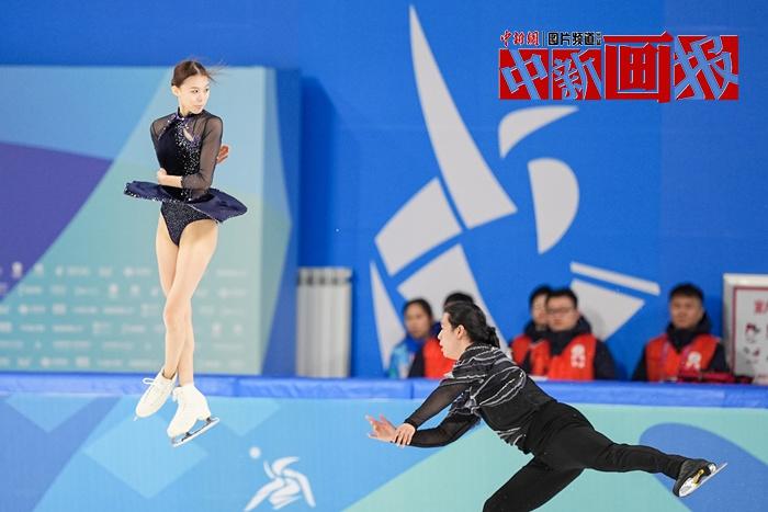 在洁白的冰面上,音乐缓缓流淌,运动员们以优雅的姿态滑行、旋转、跳跃,仿佛一朵朵花朵在冰上绽放,在亚冬会的“舞台”上,上演一幕幕精彩纷呈的视觉盛宴。图为中国选手朱易在比赛中。