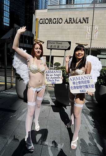 11月25日,善待动物组织的女成员在香港渣打道附近举行抗议活动,要求停止使用皮草。