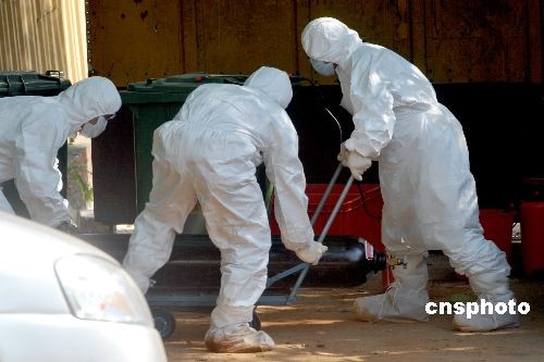 图:香港渔护署人员继续在元朗扑杀鸡只