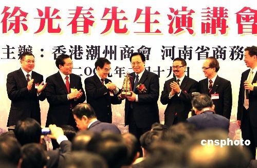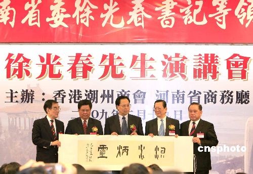 二月十九日,访港招商的河南省委书记徐光春到访香港潮州商会发表演讲。中新社发 张勤 摄