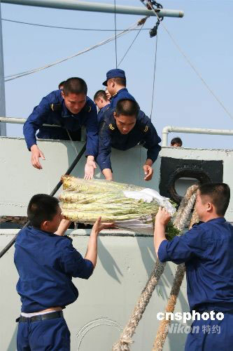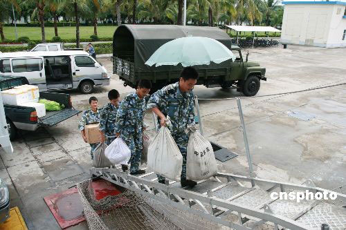 9月11日,南海舰队某勤务船大队官兵将过节物资装上船,准备运往西沙。中秋节即将来临,该大队及早动手,做好西沙官兵过节物资的补给运输准备,确保驻西沙官兵过好中秋佳节。中新社发 刘林 摄