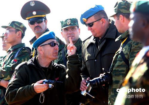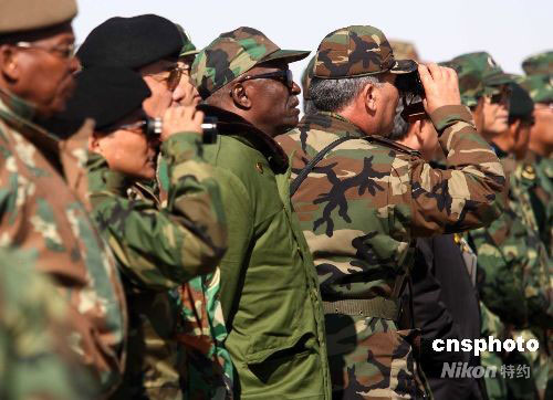 图:外国军事专家观看解放军塞北演习