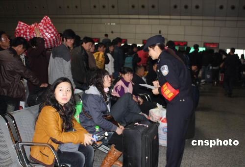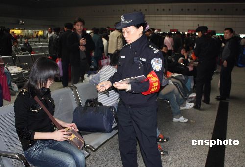 2009年1月6日,随着春运的到来,广铁旅客发送明显增多,广州铁路公安局组织警力加强对广州火车站秩序的维护,积极引导旅客有序地进站上车。并在每个安全检查口增加工作人员和民警,监督乘客进行安全检查,确保乘客乘车安全。中新社发 牟财源 摄