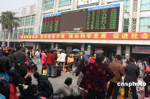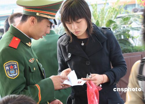 1月6日,随着春运临近,广铁旅客发送明显增多。广州铁路公安局组织警力加强对广州火车站秩序的维护,检查乘客的相关证件,引导乘客有序进站上车。中新社发 牟财源 摄