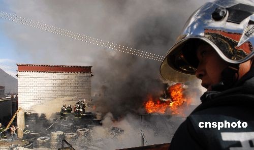 2月19日16时许,位于西藏拉萨当热东路的一民房院内堆放的轮胎起火,大火持续燃烧近一个小时,经消防官兵的奋力扑救,火势终被扑灭,所幸无人员伤亡,失火原因及火灾损失正在进一步调查中。中新社发 龙昊 摄
