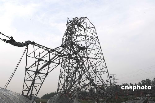 6月14日夜间,雷暴大风突袭江苏,在镇江大港开发区王巷村附近,500千伏的5291江晋线镇江段五基输电铁塔轰然倒伏,倒塔位置风速最高达到每秒33米,事故将使江苏电网500千伏北电南送中通道的稳定输送能力下降70万千瓦。据江苏省电力公司工作人员介绍,5291江晋线由镇江五峰山大跨越过江,是最早的500千伏跨江输电大动脉。目前,首批抢修人员已赶到事故现场勘察并进行前期清理工作,抢修工作将按24小时不间断进行。