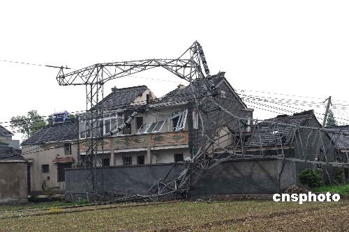 图:江苏巨风导致镇江输电塔倒伏受损(2)