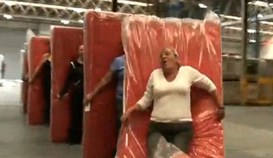 据英国媒体31日报道,近日,一段“床垫多米诺”视频走红网络,在一家家具工厂的仓库,工作人员用床垫玩了一把多米诺骨牌,并且创造了“床垫多米诺”的世界纪录。