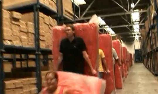 图:家具厂员工仓库大玩“床垫多米诺”(2)