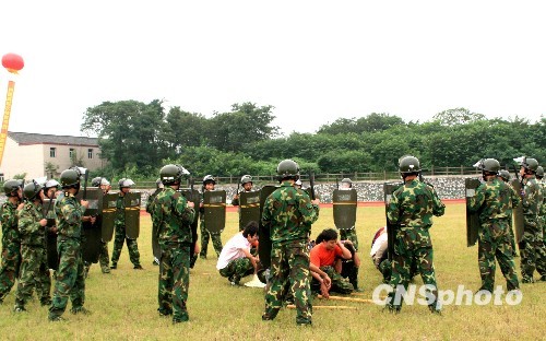 图:扬州举行“四防”队伍迎建军节展演(2)