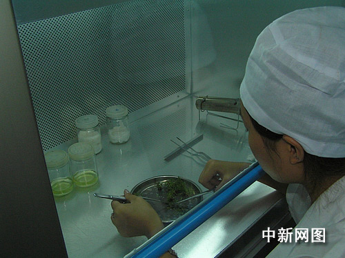 中新网成都8月7日电(梁现瑞)巨桉是世界三大速生用材树种中的佼佼者,如何从一段牙签粗细、一厘米长的枝条,在一年之内育出千万株同等品质的树苗?获得2008年四川省科技进步奖一等奖的《四川巨桉短周期工业原料林定向培育技术研究及示范推广》,科研人员用自己艰辛的探索,实现了这一“神奇72变”,并向人们揭开了“植物克隆”技术的神秘面纱。