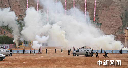 中新网兰州9月11日电 (记者 侯志雄)今天上午,随着二十发迎天而起的信号弹,甘肃省“金城09”反恐怖演习在兰州市拉开的帷幕。