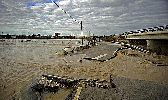 图为遭洪水冲毁的连接西班牙拉斯帕切卡与赫雷斯德拉弗龙特拉的一段公路。