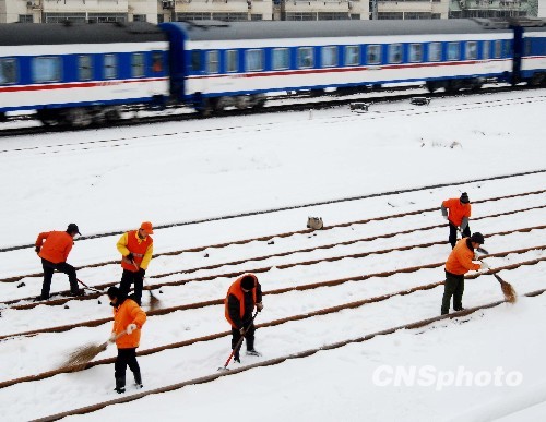 图:京九铁路打冰扫雪保畅通(2)
