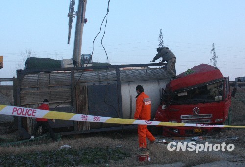 图:装载近10吨危险化学品槽罐车翻车(2)